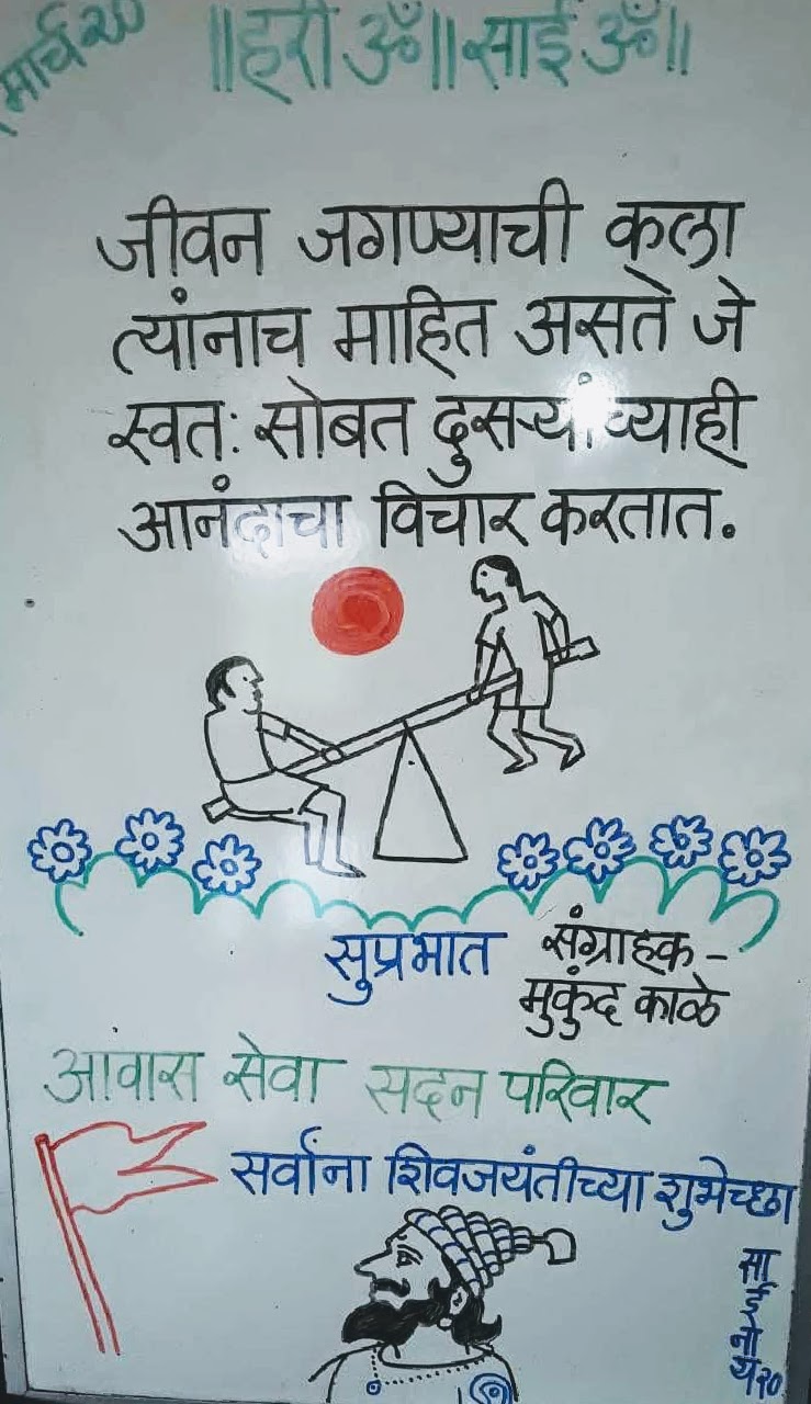Sainath. a proud Maharastran, made a poster on the white board that stands in the dining room and sent it to me to put in this blog.